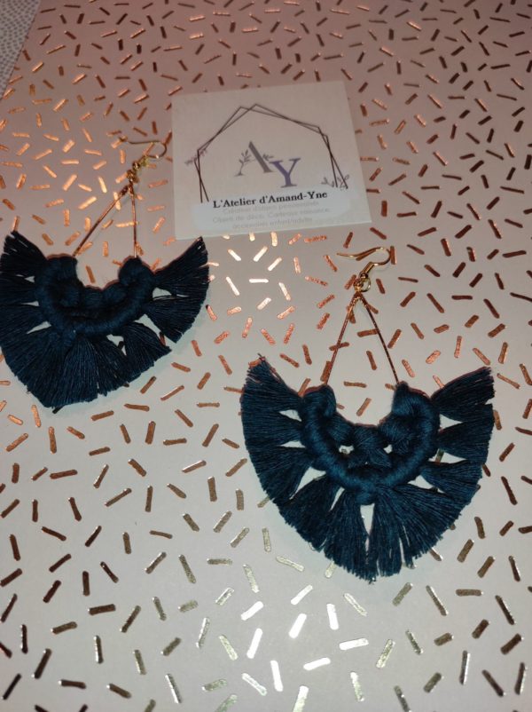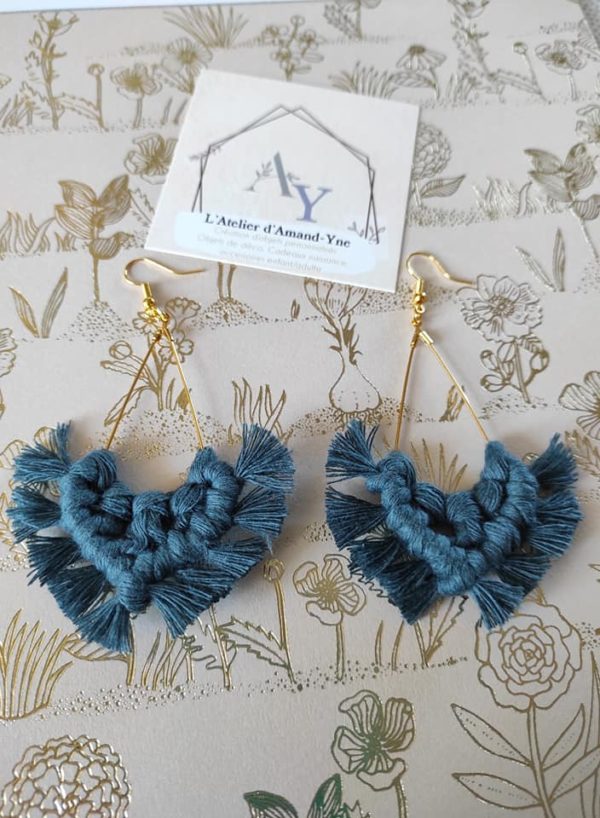 Les Boucles d’oreilles en macramé sont fabriqué en coton, le support est en acier sans nickel.